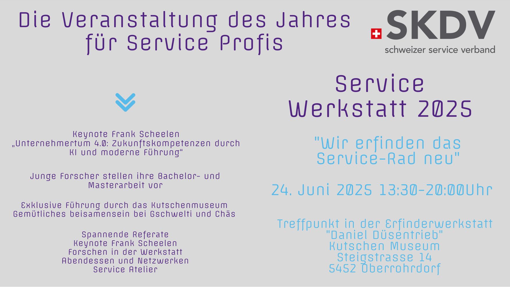Ende Juni ist es endlich wieder soweit und wir freuen uns darauf, Sie bei der SKDV Service Werkstatt willkommen zu heissen.